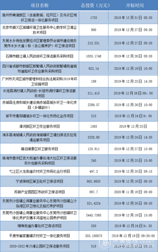 2019年12月17日和12月27日,这两个时间点为环卫人圈起来啦,2个4亿元以上和一个近3亿元环卫大项目,即将开标!